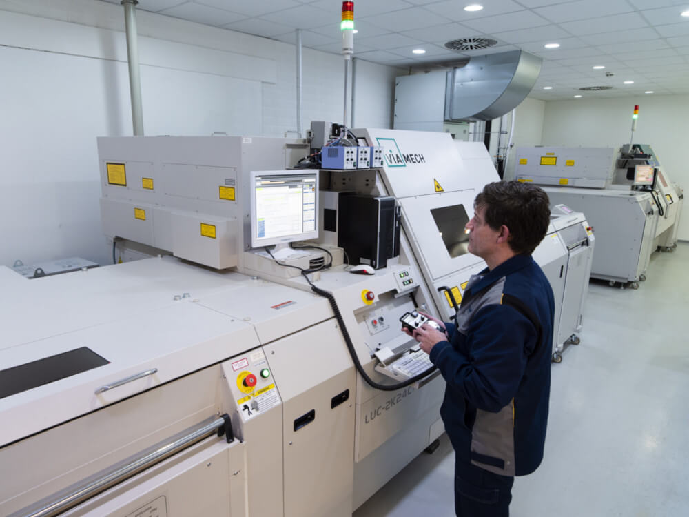 Für das mechanische Bohren werden CNC-Bohrautomaten der neuesten Generation eingesetzt. Hier werden Bohrungen eingefügt, die für bedrahtete Bauteile benötigt werden sowie für die Durchkontaktierungen der einzelnen Lagen. Es kommen Bohrer zum Einsatz mit einem Durchmesser von 0,25 bis 6,35 mm.
