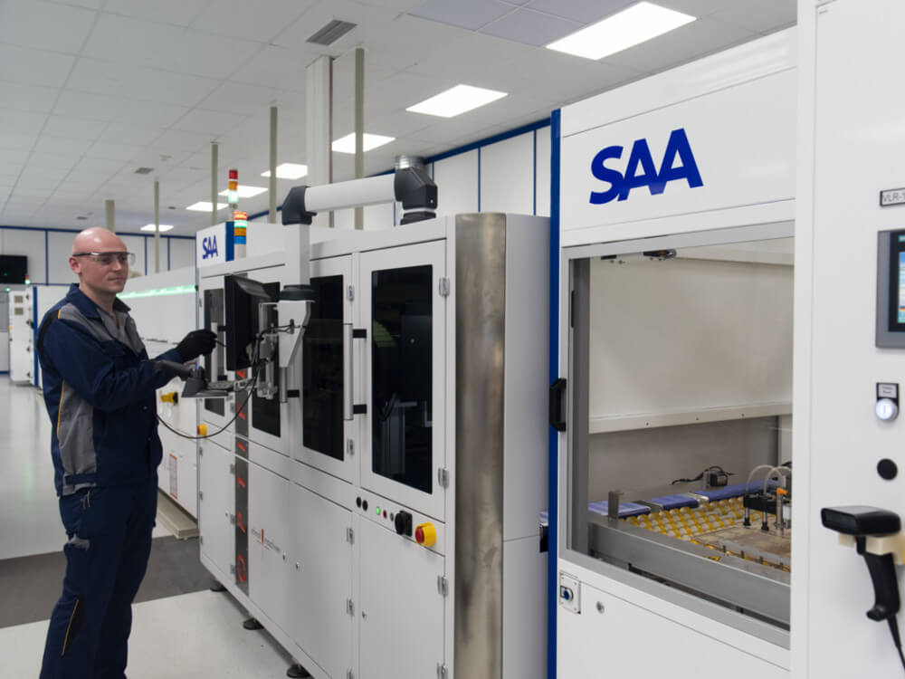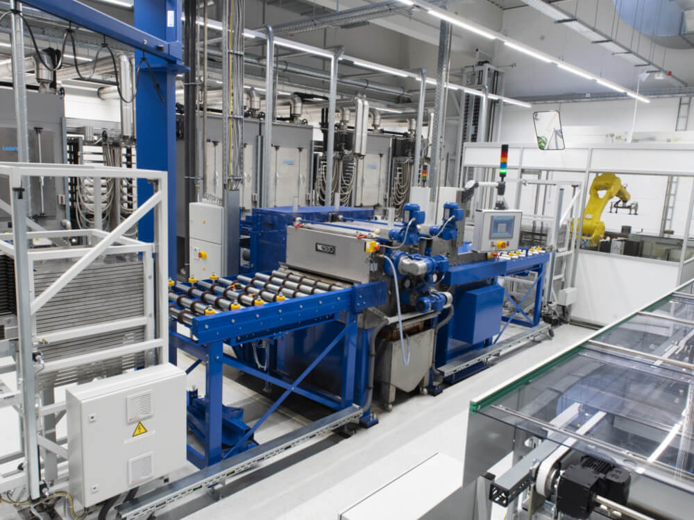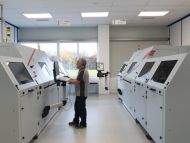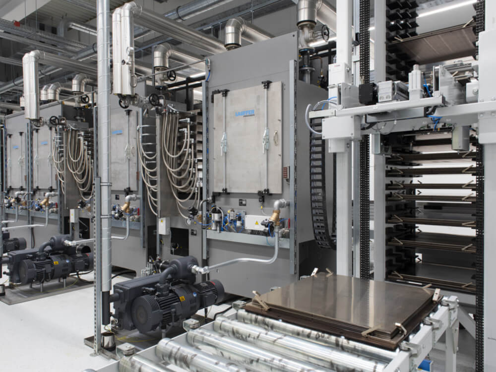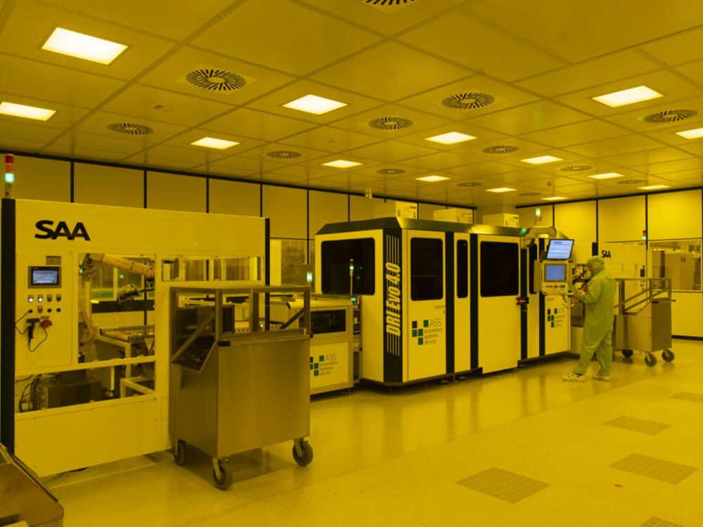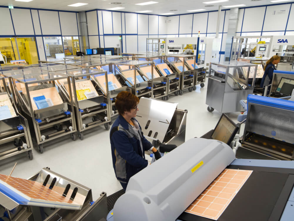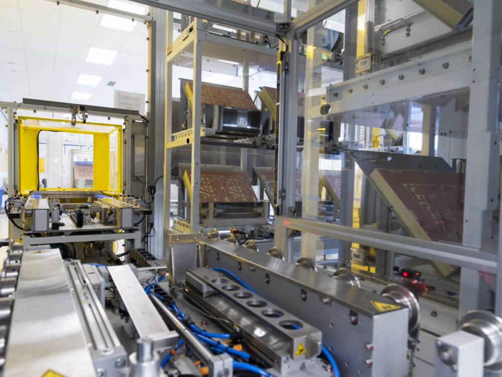 The manufacturing is characterized by its high degree of automation and digitalization. This already begins with the computer controlled stores and draws through the entire process and material flow. The traceability for each PCB via its barcode, robot-controlled handling devices and machinery as well as autonomous pallet truck transporters are factors, which additionally ensure top level quality. The category 10.000 clean rooms (inside optical device unit 1.000), similar to those for chip manufacturing and digital PCB exposure, contribute extra to this.