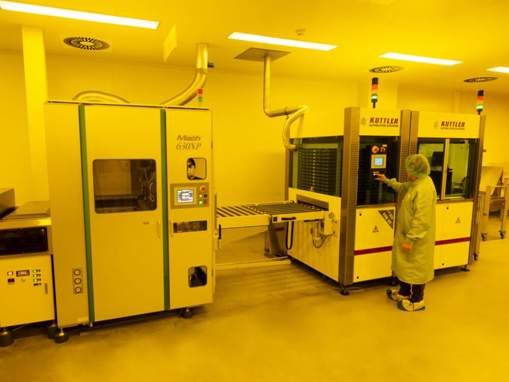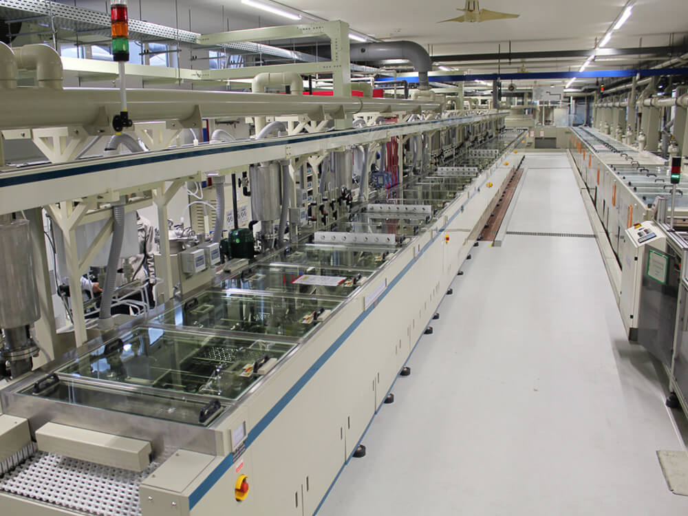 For photo printing, the conductive pattern is applied to the outer layer. This is done using absolutely state-of-the-art direct exposure via laser on a photo-sensitive foil which is previously attached. Compared with exposure with films which used to be applied, this process is considerably more precise and efficient. Then, the pitch spaces of 0,3 mm can be realized, meeting the requirements regarding miniaturization.